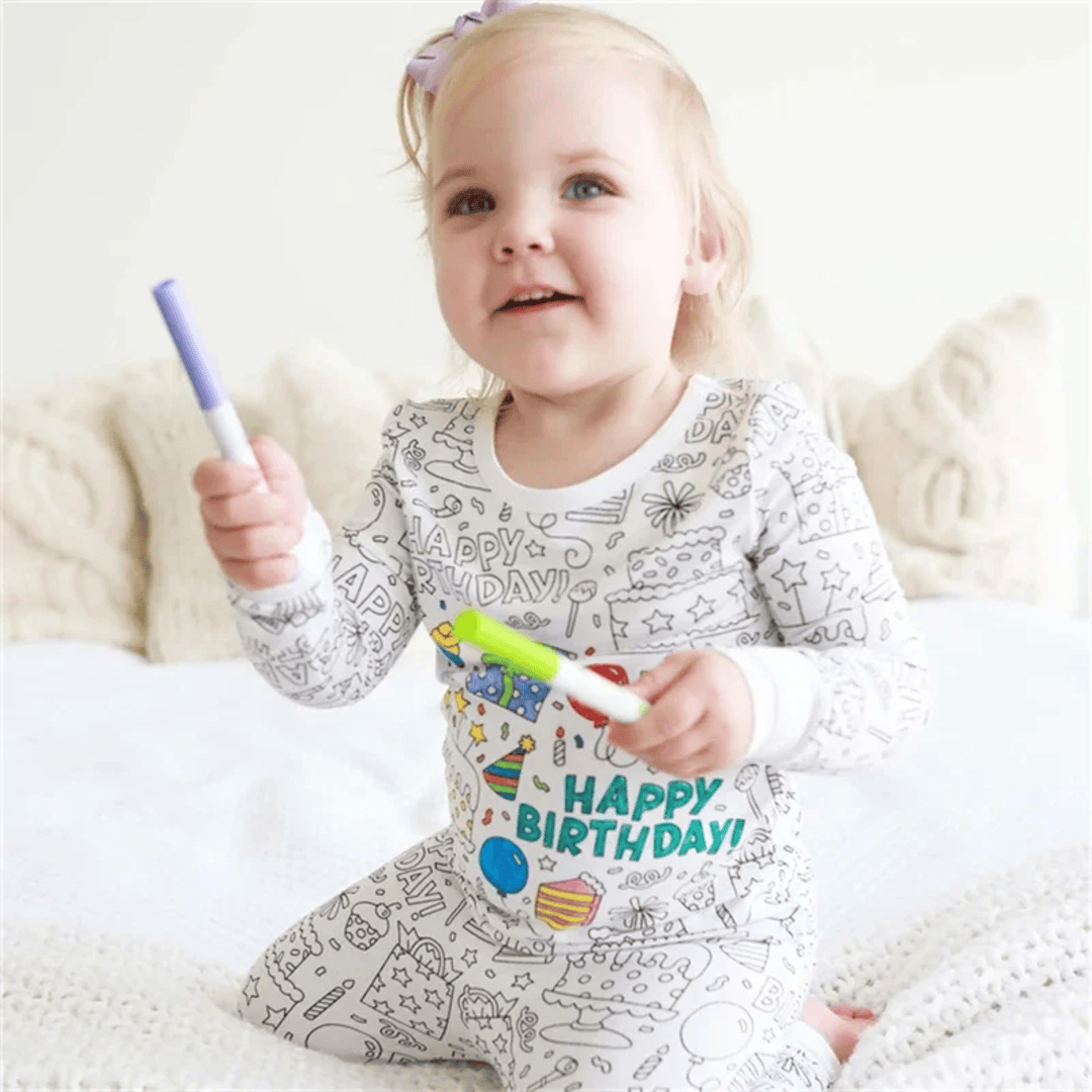 Notre concept unique repose sur des feutres lavables en machine. Une fois colorié, le pyjama passe en machine et revient comme neuf, prêt pour une nouvelle session artistique ! C’est une expérience renouvelable, durable et zéro ennui. Les enfants ne s’en lassent jamais, et les parents font des économies sur les activités à la maison.