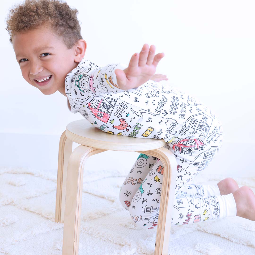 Donnez vie aux rêves les plus colorés de votre enfant avec ce pyjama coloré ! Fabriqué à partir de notre tissu en bambou, votre enfant restera au frais et à l'aise tout en créant son propre pyjama.
